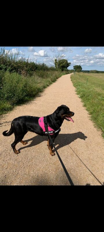 Beautiful, well-mannered 6-year-old Rottweiler bitch available to a responsible and caring home.